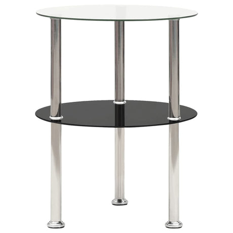2-Tier Side Table Transparent & Black 38 cm Tempered Glass