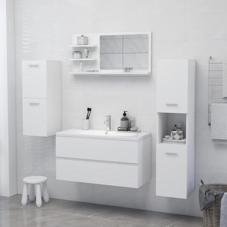 2 Piece Bathroom Furniture Set High Gloss White Engineered Wood