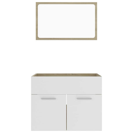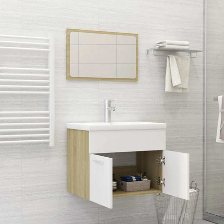 2 Piece Bathroom Furniture Set White and Sonoma Oak Engineered Wood