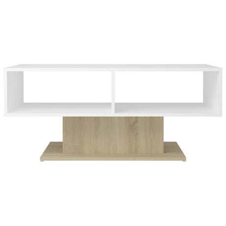 Coffee Table White and Sonoma Oak 103.5x50x44.5 cm Engineered Wood