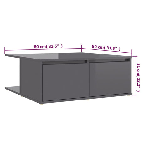 Coffee Table High Gloss Grey 80x80x31 cm Engineered Wood