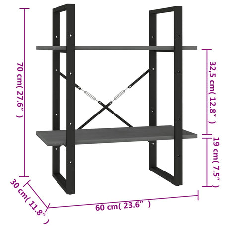 2-Tier Book Cabinet Grey 60x30x70 cm Solid Pine Wood