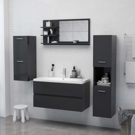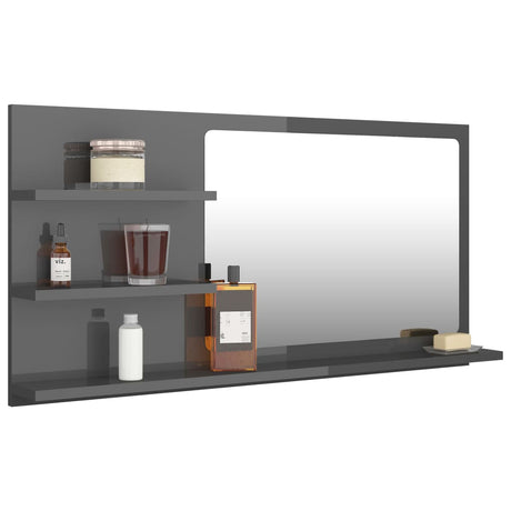 Bathroom Mirror High Gloss Grey 90x10.5x45 cm Engineered Wood