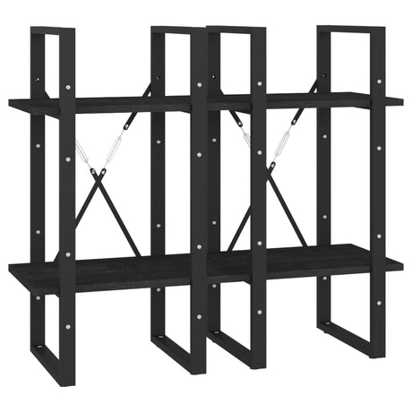 2-Tier Book Cabinet Black 40x30x70 cm Solid Pine Wood