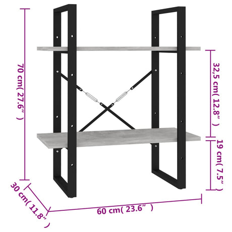 2-Tier Book Cabinet Concrete Grey 60x30x70 cm Engineered Wood