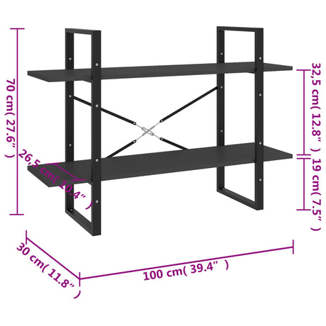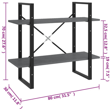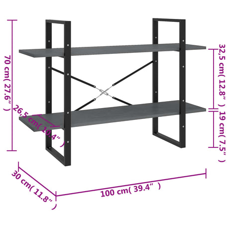 2-Tier Book Cabinet Grey 100x30x70 cm Engineered Wood