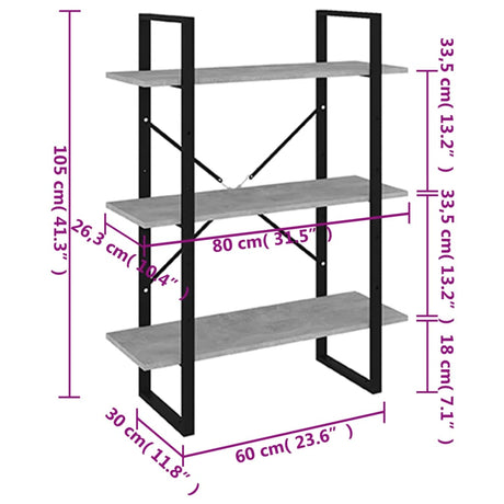 Book Cabinet Concrete Grey 80x30x105 cm Engineered Wood