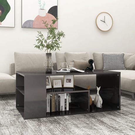 Coffee Table High Gloss Grey 100x50x40 cm Engineered Wood