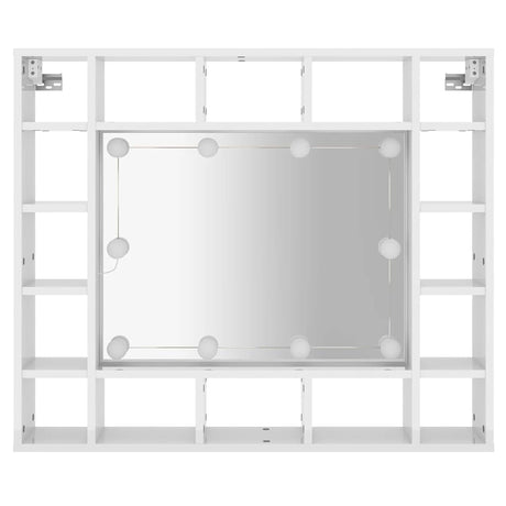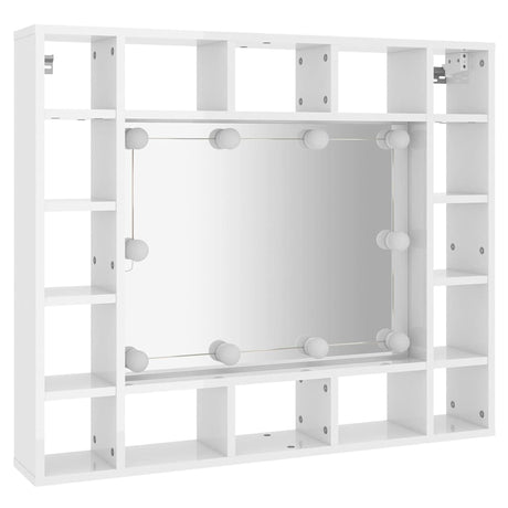 Mirror Cabinet with LED High Gloss White 91x15x76.5 cm