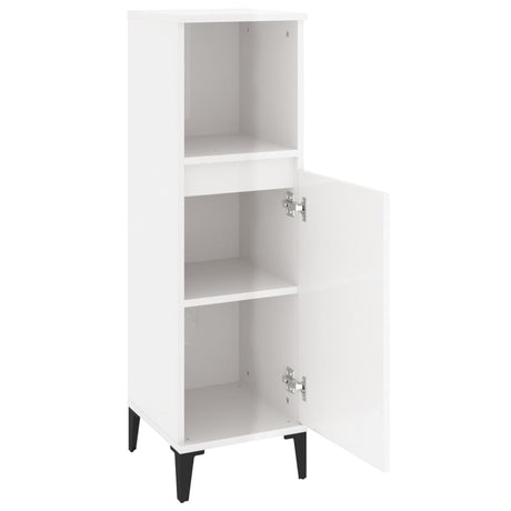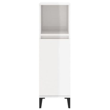 Bathroom Cabinet High Gloss White 30x30x100 cm Engineered Wood
