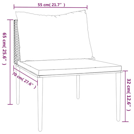 Garden Middle Sofa with Cushions Grey Poly Rattan