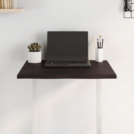 Table Top Dark Brown 80x50x2 cm Treated Solid Wood Oak Live Edge