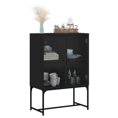 Side Cabinet with Glass Doors Black 69x37x100 cm