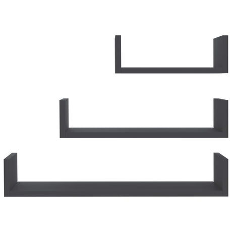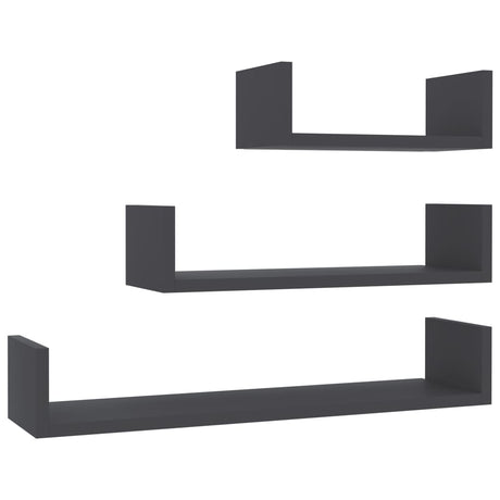 Wall Display Shelf 3 pcs Grey Engineered Wood