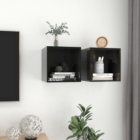 Wall Cabinets 2 pcs High Gloss Black 37x37x37 cm Engineered Wood