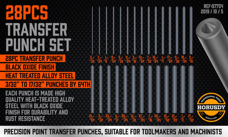 28x Center Transfer Punches Set Machinists Tool Punch Stand Heat Treated Steel