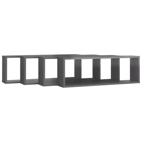 Wall Cube Shelves 4 pcs High Gloss Grey 80x15x26.5 cm Engineered Wood