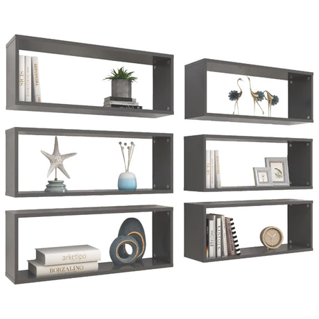 Wall Cube Shelves 6 pcs Grey 60x15x23 cm Engineered Wood