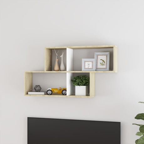 Wall Shelf White and Sonoma Oak 100x18x53 cm Engineered Wood