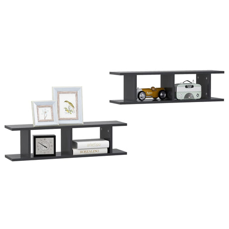 Wall Shelves 2 pcs Grey 75x18x20 cm Engineered Wood