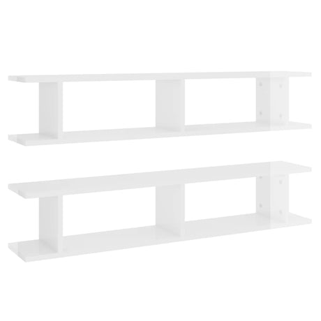 Wall Shelves 2 pcs High Gloss White 105x18x20cm Engineered Wood