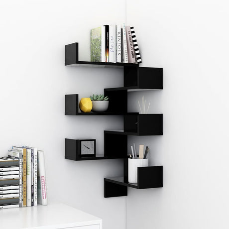 Wall Corner Shelves 2 pcs Black 40x40x50 cm Engineered Wood