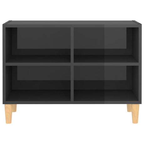 TV Cabinet with Solid Wood Legs High Gloss Grey 69.5x30x50 cm