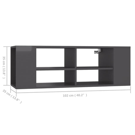 Wall Shelf High Gloss Grey 102x30x17 cm Engineered Wood