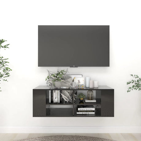 Wall-Mounted TV Cabinet High Gloss Black 102x35x35 cm Engineered Wood