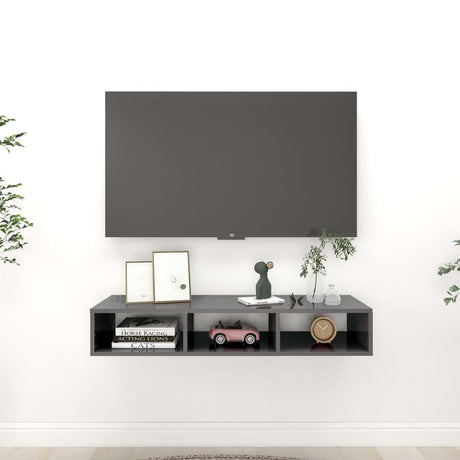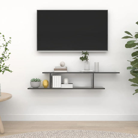 Wall-Mounted TV Shelf High Gloss Grey 125x18x23 cm Engineered Wood