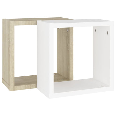 Wall Cube Shelves 2 pcs White and Sonoma Oak 30x15x30 cm
