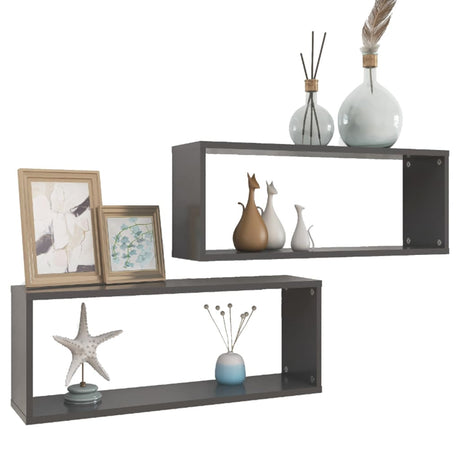 Wall Cube Shelves 2 pcs Grey 80x15x26.5 cm Engineered Wood