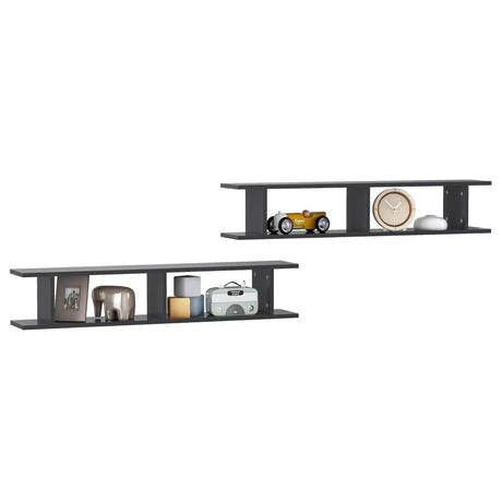 Wall Shelves 2 pcs High Gloss Grey 105x18x20cm Engineered Wood