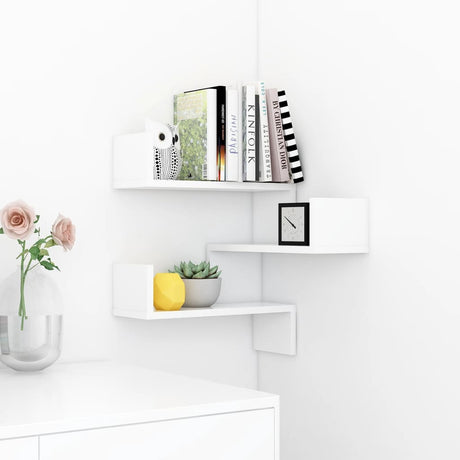 Wall Corner Shelf High Gloss White 20x20x127.5 cm Engineered Wood