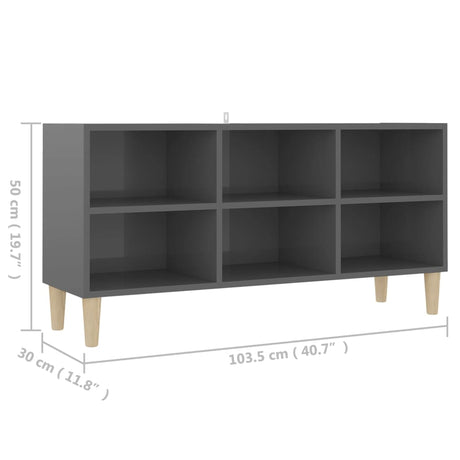 TV Cabinet with Solid Wood Legs High Gloss Grey 103.5x30x50 cm
