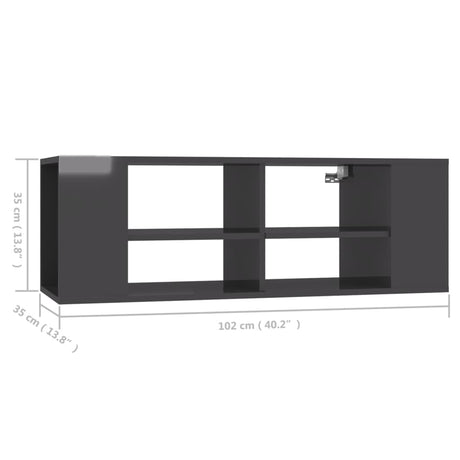 Wall-Mounted TV Cabinet High Gloss Grey 102x35x35 cm Engineered Wood