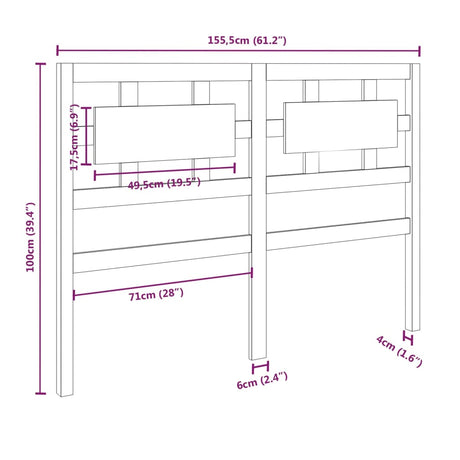Bed Headboard Black 155.5 cm Solid Wood Pine