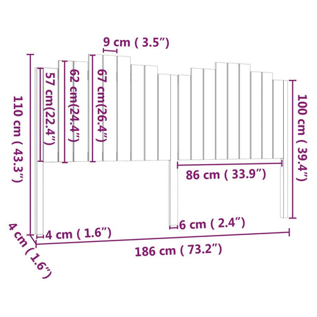 Bed Headboard Black 186 cm Solid Wood Pine