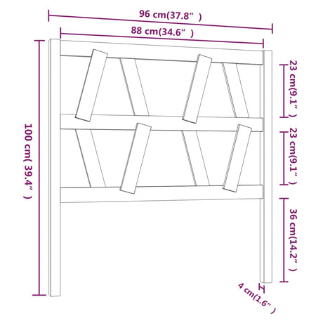 Bed Headboard Black 95.5 cm Solid Wood Pine