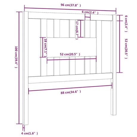 Bed Headboard White 95.5 cm Solid Wood Pine