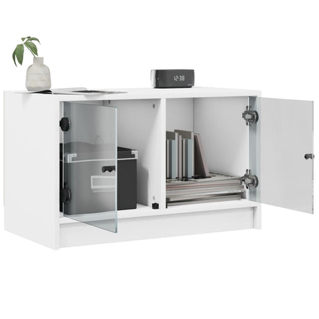 TV Cabinet with Glass Doors White 68x37x42 cm