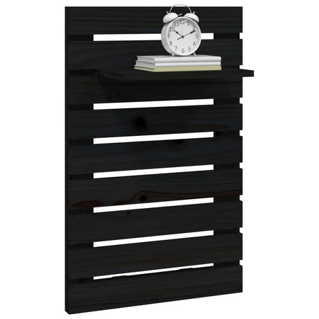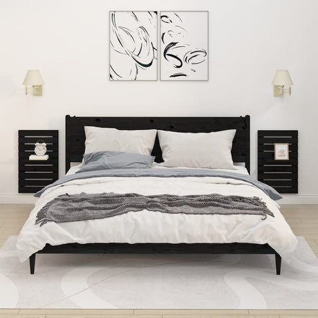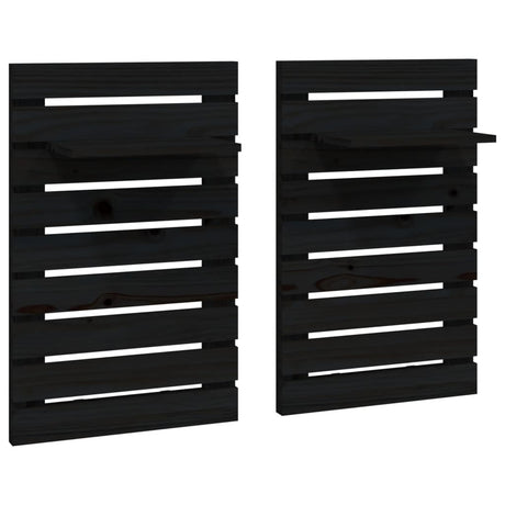 Wall-mounted Bedside Shelves 2 pcs Black Solid Wood Pine