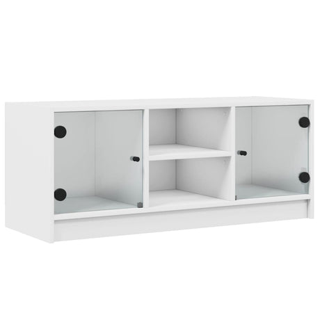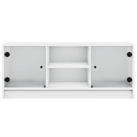 TV Cabinet with Glass Doors White 102x37x42 cm