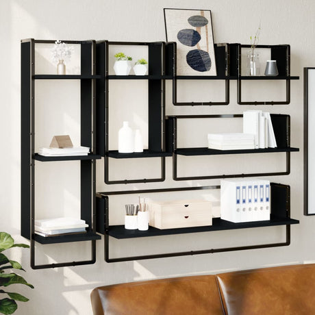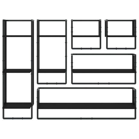 6 Piece Wall Shelf Set with Bars Black Engineered Wood