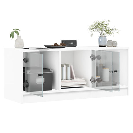 TV Cabinet with Glass Doors White 102x37x42 cm