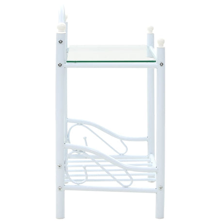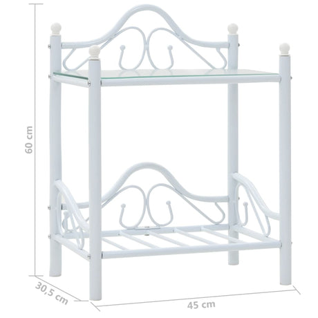 Bedside Table Steel and Tempered Glass 45x30.5x60 cm White