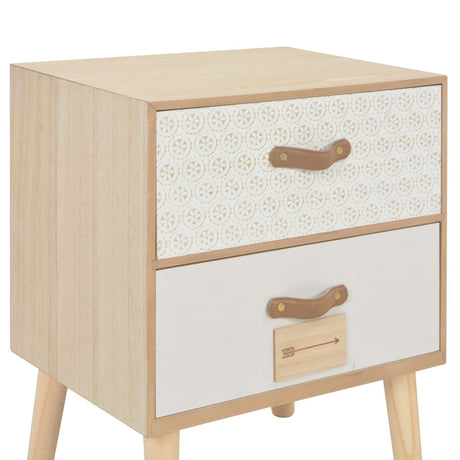 Nightstand Brown and White 38x28x45 cm Paulownia Wood