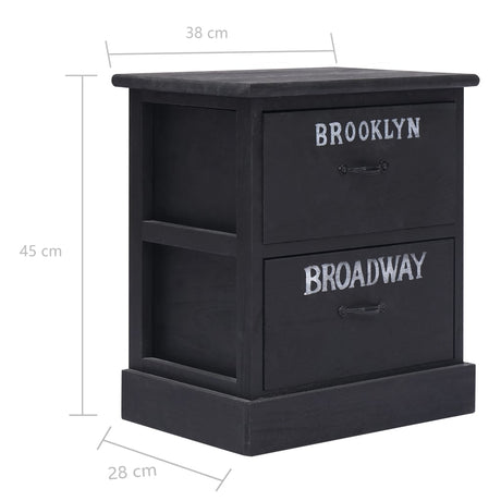 Nightstand Black 38x28x45 cm Paulownia Wood