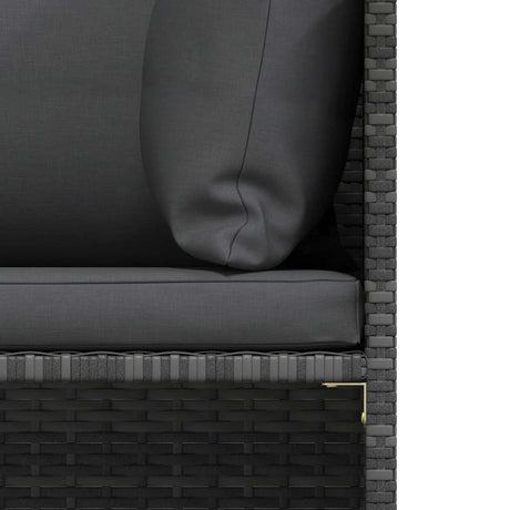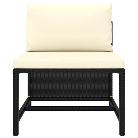 Sectional Middle Sofa with Cushions Black Poly Rattan