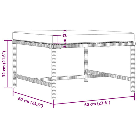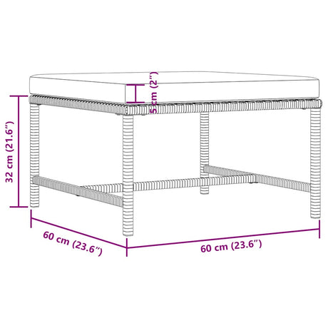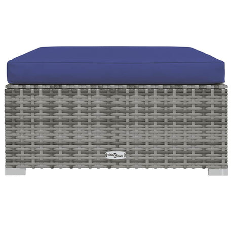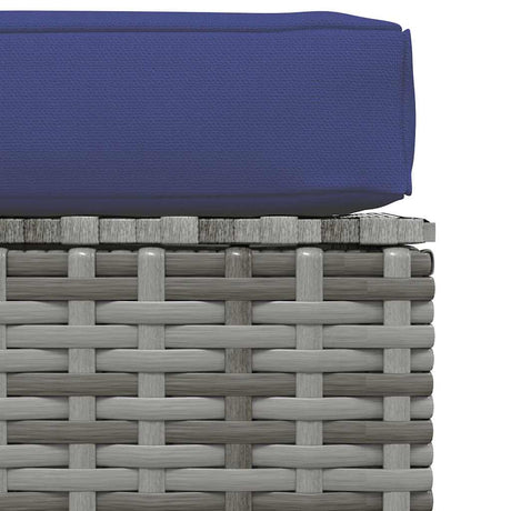 Garden Footrest with Cushion Grey 70x70x30 cm Poly Rattan